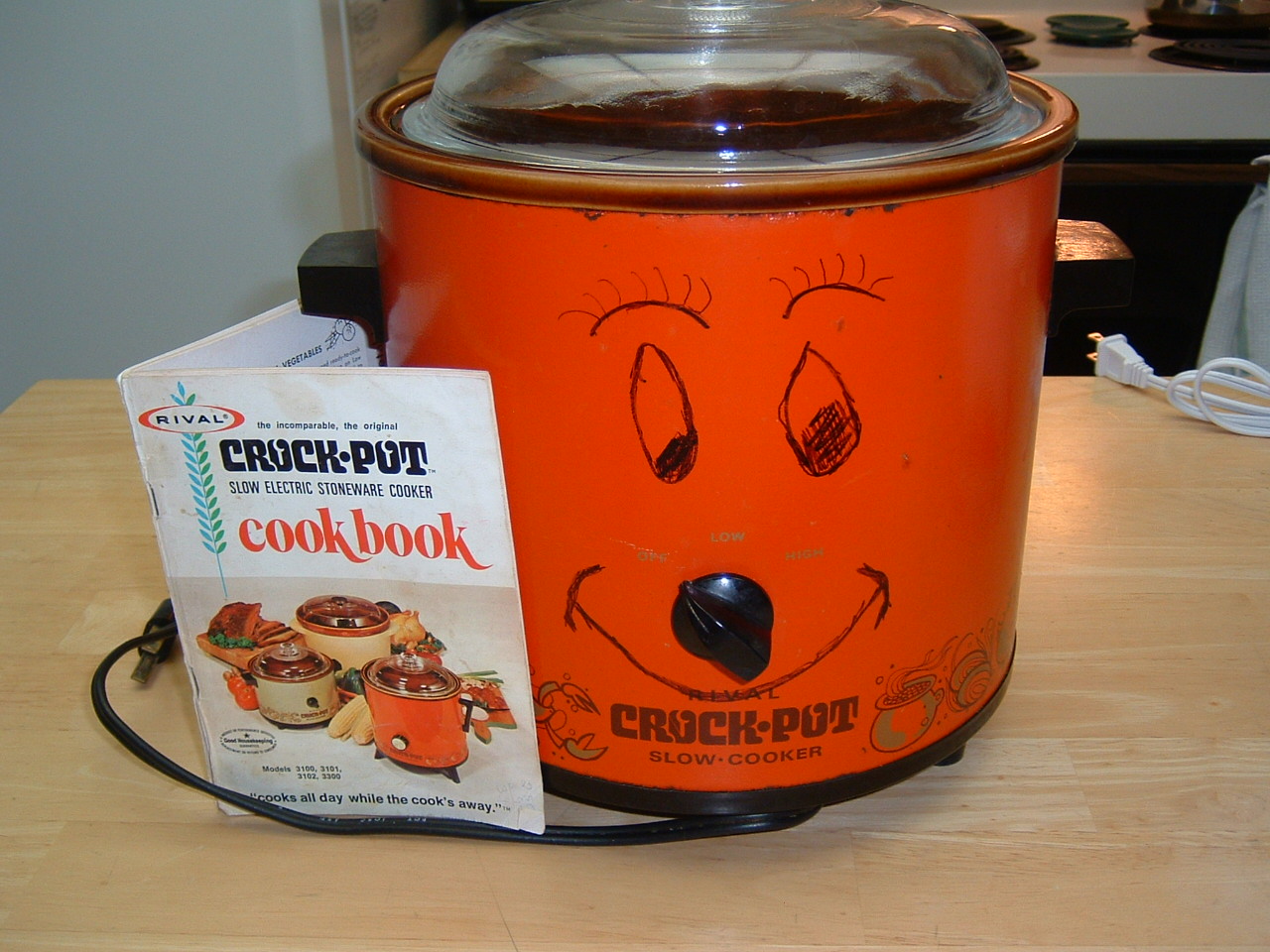 And so it goes. Yet for the better for us, a target audience who needed to have meals prepared by a cooker that “cooks all day while the cook’s away.” The burnt-orange-colored Rival Crock-Pot, Model No. 3100, Capacity 3 ½ qt, was the answer.