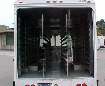 The interior of the truck had an aisle wide enough for an adult person to walk to the rear-entry door, which on some trucks slid up into the roof, while on others opened outward. Facing the aisle on either side were shelves and racks, holding trays of baked breads, fried donuts (French, my favorite), cakes, cake donuts, and other goodies like éclairs and special- order dinner rolls.